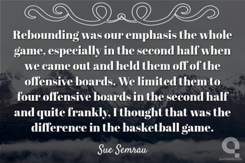 Obviously, rebounding was a major issue. That possession where they got three or four (offensive) boards pretty much summed up the game. Sue Johnson