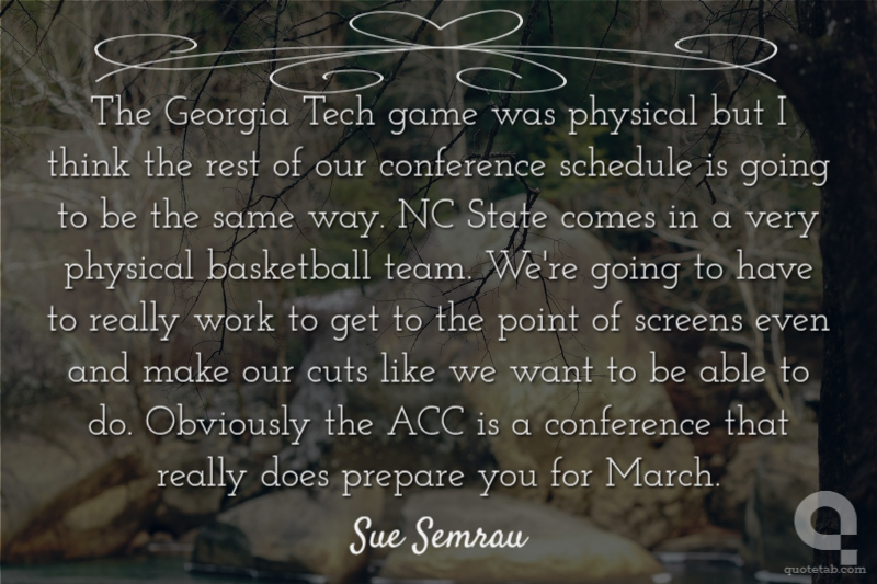 LSU did a great job. We took care of their zone pretty easily, but then they played a lot of man and did a good job with it. I'm not pleased with our team's toughness. We really need to be strong on the court. It was a good lesson for us, but not at all the kind of basketball we play. Joanne McCallie