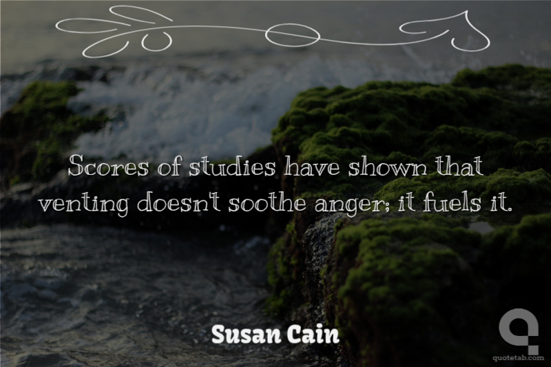 Scores of studies have shown that venting doesn't soothe anger; it fuels it. Susan Cain