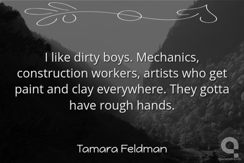 I like dirty boys. Mechanics, construction workers, artists who get paint and clay everywhere. They gotta have rough hands. Tamara Feldman