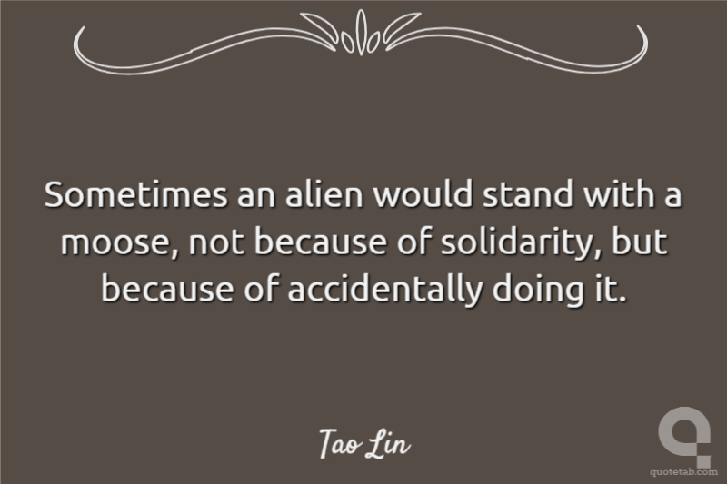 Sometimes an alien would stand with a moose, not because of solidarity, but because of accidentally doing it. Tao Lin