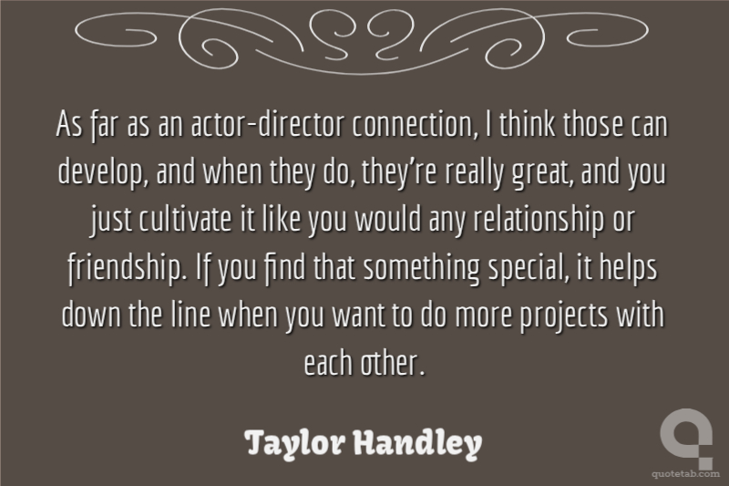 As far as an actor-director connection, I think those can develop, and when they do, they're really great, and you just cultivate it like you would any relationship or friendship. If you find that something special, it helps down the line when you want to do more projects with each other. Taylor Handley