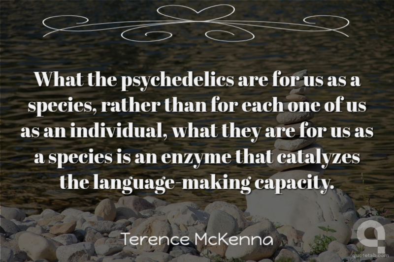 What the psychedelics are for us as a species, rather than for each one of us as an individual, what they are for us as a species is an enzyme that catalyzes the language-making capacity. Terence McKenna