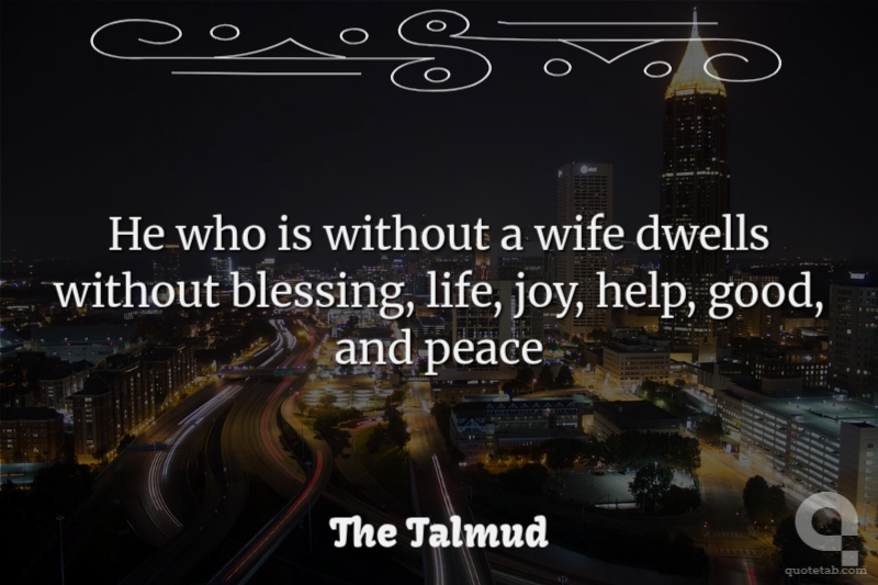 He who is without a wife dwells without blessing, life, joy, help, good, and peace The Talmud