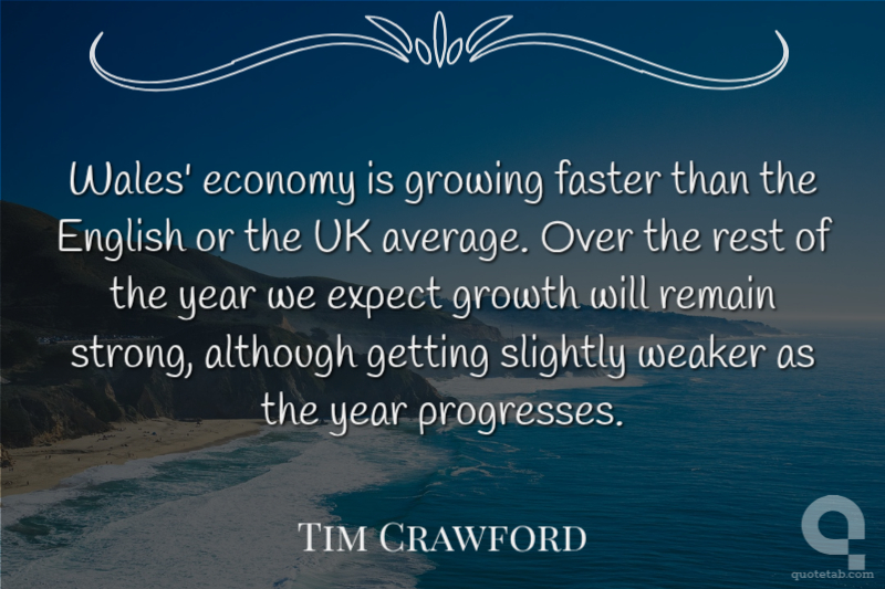 Wales' economy is growing faster than the English or the UK average. Over the rest of the year we expect growth will remain strong, although getting slightly weaker as the year progresses. Tim Crawford