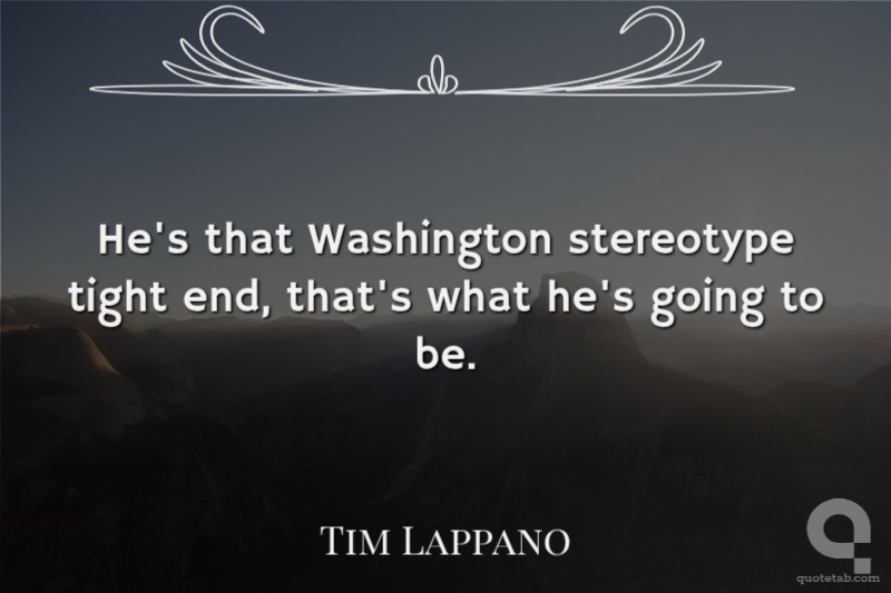 He's that Washington stereotype tight end, that's what he's going to be. Tim Lappano