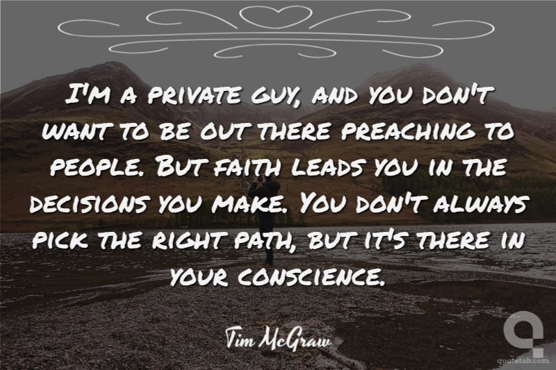 I'm a private guy, and you don't want to be out there preaching to people. But faith leads you in the decisions you make. You don't always pick the right path, but it's there in your conscience. Tim McGraw