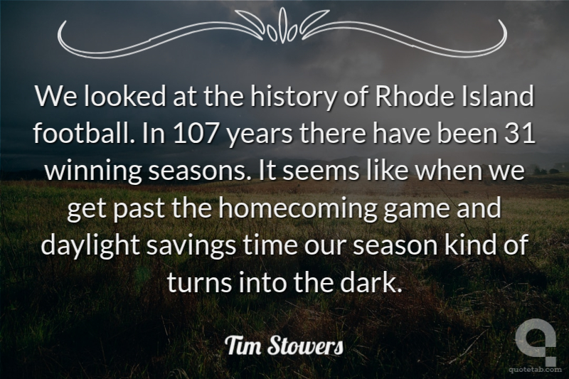 We looked at the history of Rhode Island football. In 107 years there have been 31 winning seasons. It seems like when we get past the homecoming game and daylight savings time our season kind of turns into the dark. Tim Stowers
