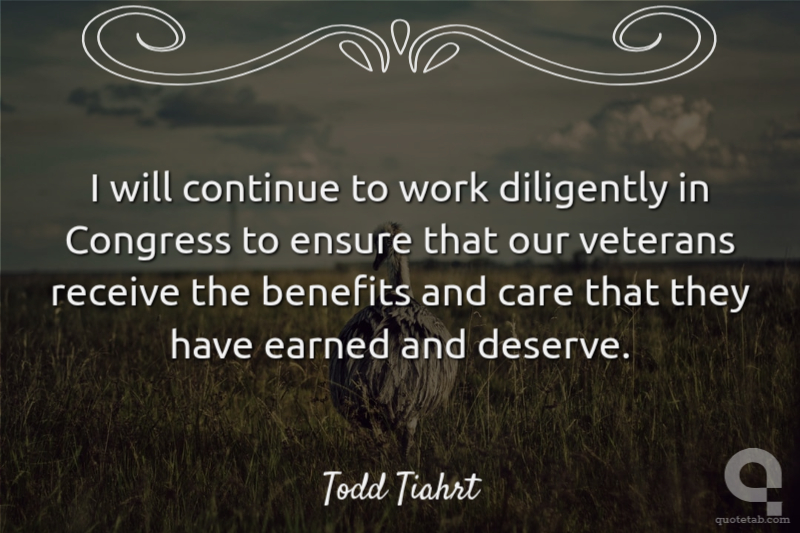 I will continue to work diligently in Congress to ensure that our veterans receive the benefits and care that they have earned and deserve. Todd Tiahrt