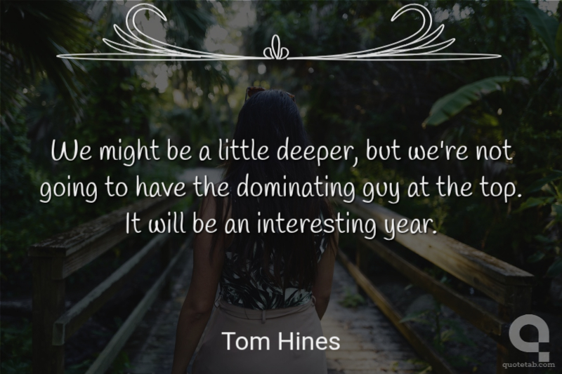 We might be a little deeper, but we're not going to have the dominating guy at the top. It will be an interesting year. Tom Hines