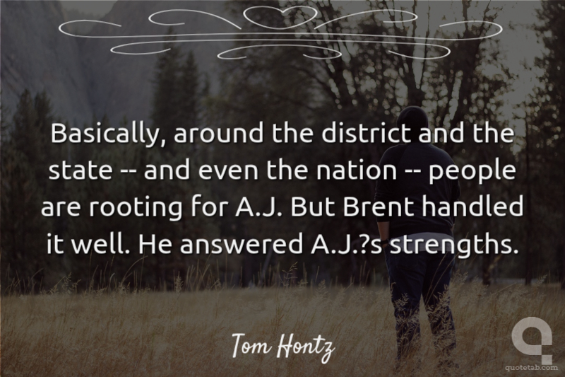 Basically, around the district and the state -- and even the nation -- people are rooting for A.J. But Brent handled it well. He answered A.J.?s strengths. Tom Hontz