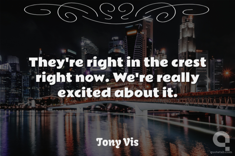 They're right in the crest right now. We're really excited about it. Tony Vis