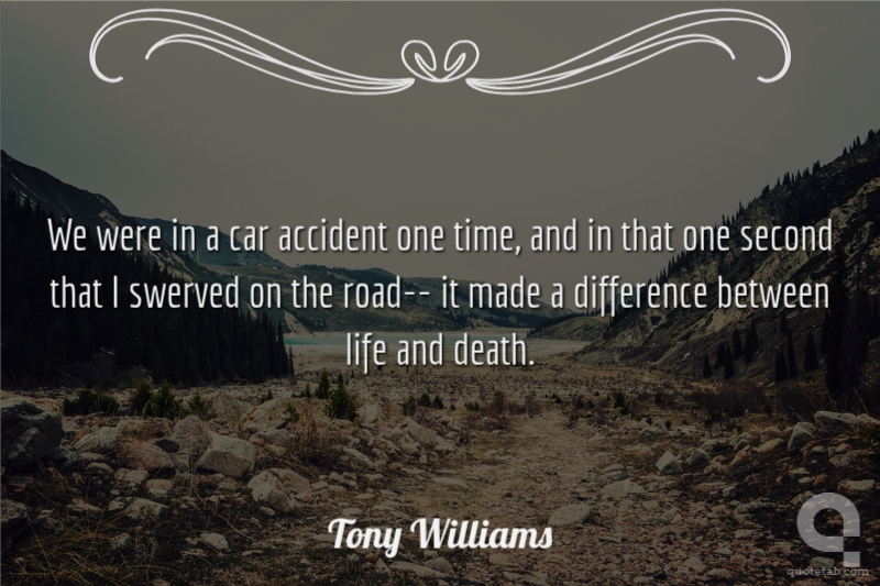 We were in a car accident one time, and in that one second that I swerved on the road-- it made a difference between life and death. Tony Williams