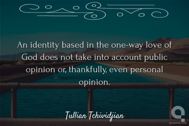 An identity based in the one-way love of God does not take into account public opinion or, thankfully, even personal opinion. Tullian Tchividjian