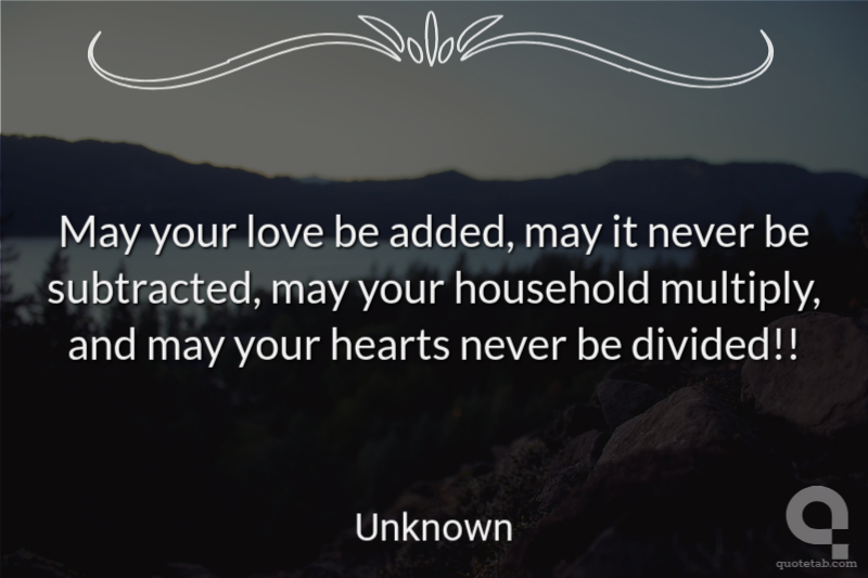 May your love be added, may it never be subtracted, may your household multiply, and may your hearts never be divided!! Unknown