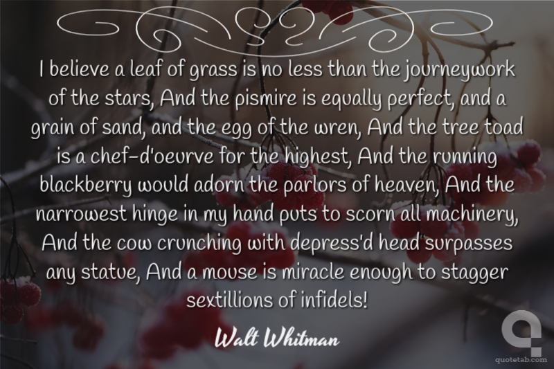 Far overhead from beyond the veil of blue sky which hid them the stars sang again; a pure, cold, difficult music. Then there came a swift flash like fire (but it burnt nobody) either from the sky or from the Lion itself, and every drop of blood tingled in the children's bodies, and the deepest, wildest voice they had ever heard was saying: "Narnia, Narnia, Narnia, awake. Love. Think. Speak. Be walking trees. Be talking beasts. Be divine waters. C. S. Lewis