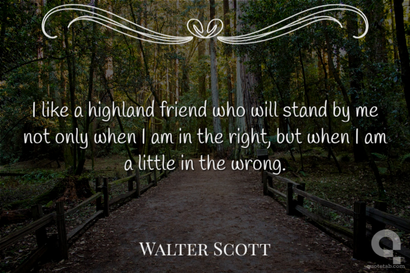 I like a highland friend who will stand by me not only when I am in the right, but when I am a little in the wrong. Walter Scott