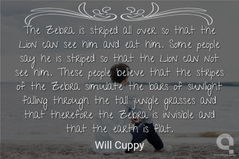 Everytime I look at a zebra, I can't figure out whether it's black with white stripes or white with black stripes, and that frustrates me. Jodi Picoult