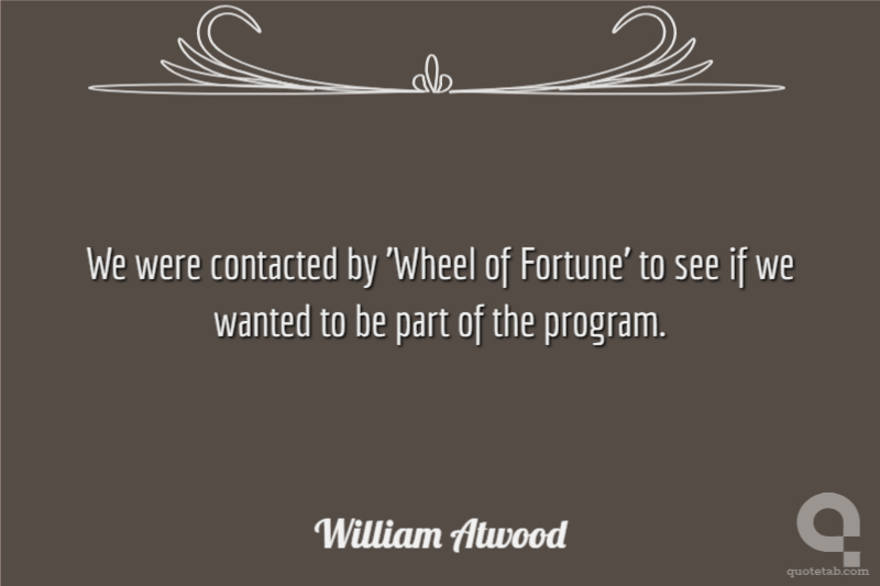 We were contacted by 'Wheel of Fortune' to see if we wanted to be part of the program. William Atwood