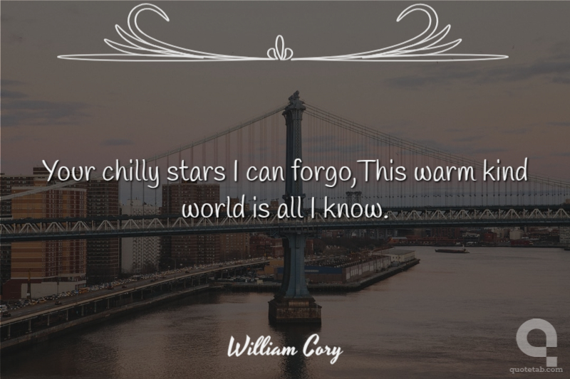 Your chilly stars I can forgo,This warm kind world is all I know. William Cory