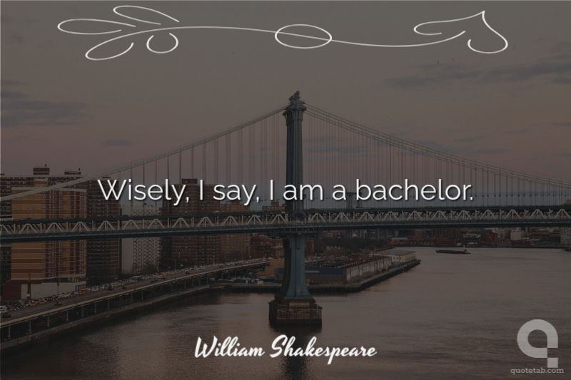 William Shakespeare Wisely, I say, I am a bachelor.