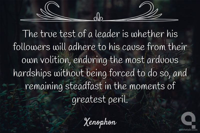 The true test of a leader is whether his followers will adhere to his cause from their own volition, enduring the most arduous hardships without being forced to do so, and remaining steadfast in the moments of greatest peril. Xenophon