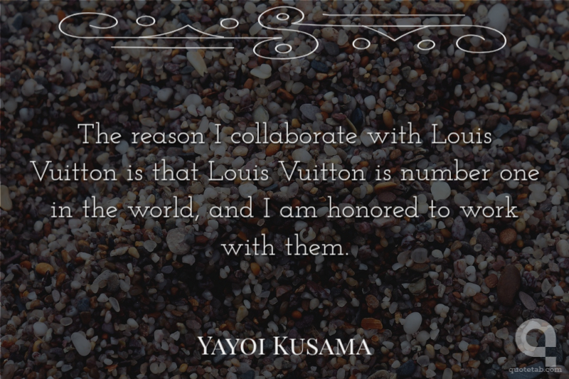 The reason I collaborate with Louis Vuitton is that Louis Vuitton is number one in the world, and I am honored to work with them. Yayoi Kusama