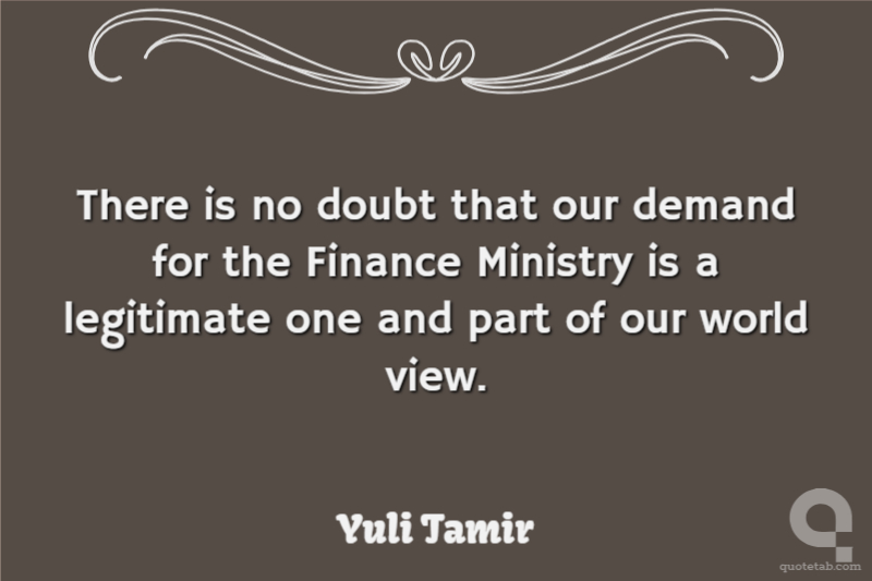 There is no doubt that our demand for the Finance Ministry is a legitimate one and part of our world view. Yuli Tamir