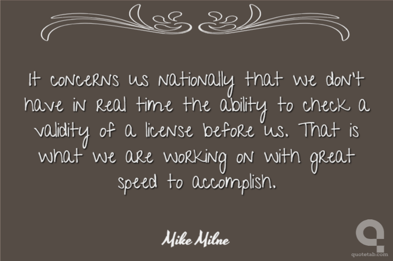It concerns us nationally that we don't have in real time the ability to check a validity of a license before us. That is what we are working on with great speed to accomplish.