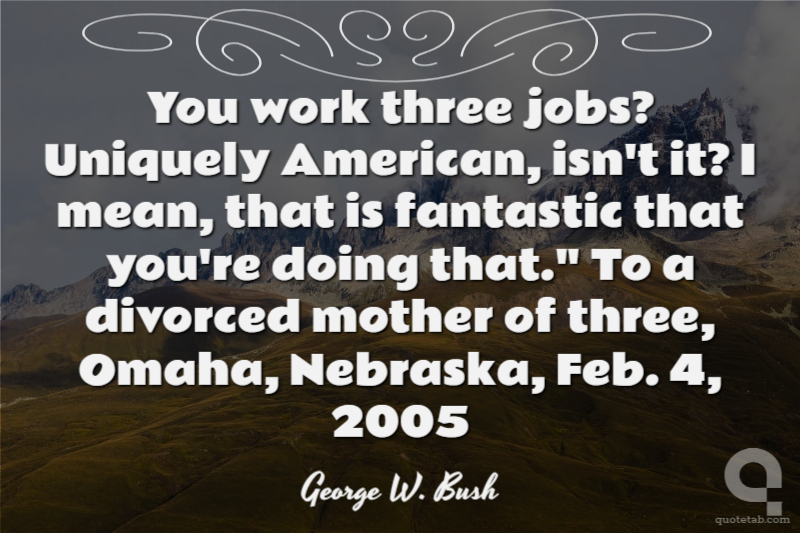 You work three jobs? Uniquely American, isn't it? I mean, that is fantastic that you're doing that." To a divorced mother of three, Omaha, Nebraska, Feb. 4, 2005