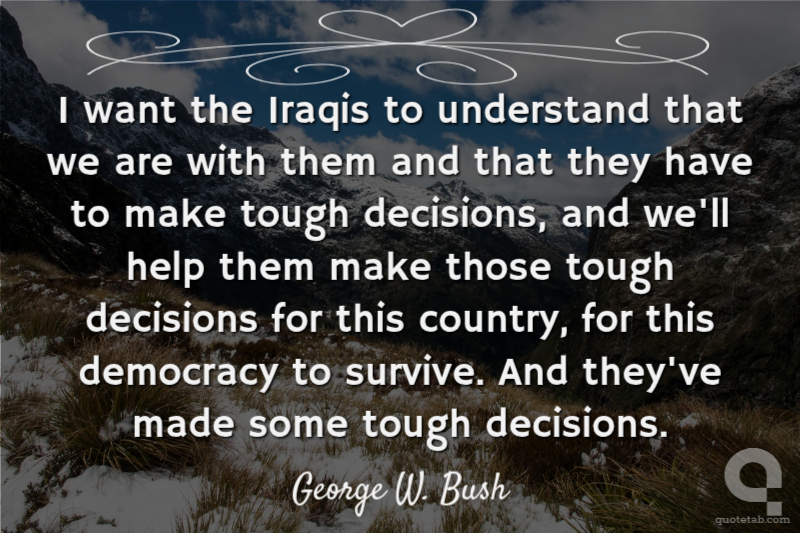 I want the Iraqis to understand that we are with them and that they have to make tough decisions, and we'll help them make those tough decisions for this country, for this democracy to survive. And they've made some tough decisions.