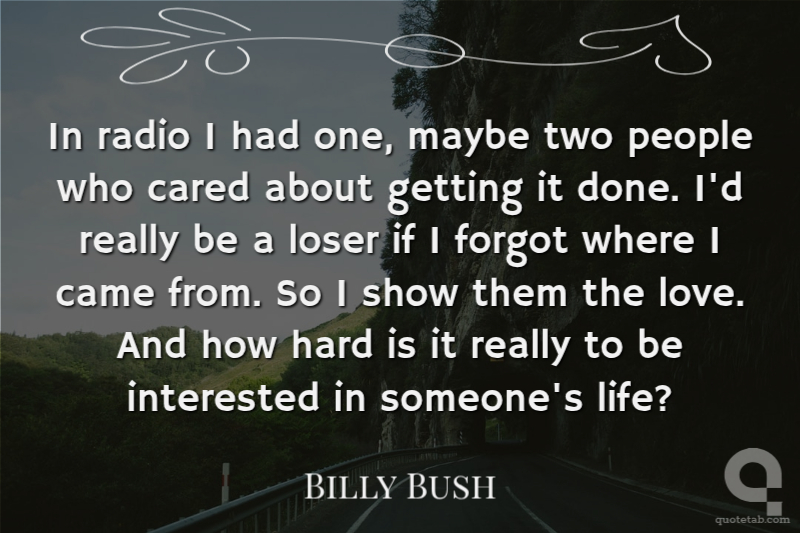 In radio I had one, maybe two people who cared about getting it done. I'd really be a loser if I forgot where I came from. So I show them the love. And how hard is it really to be interested in someone's life?