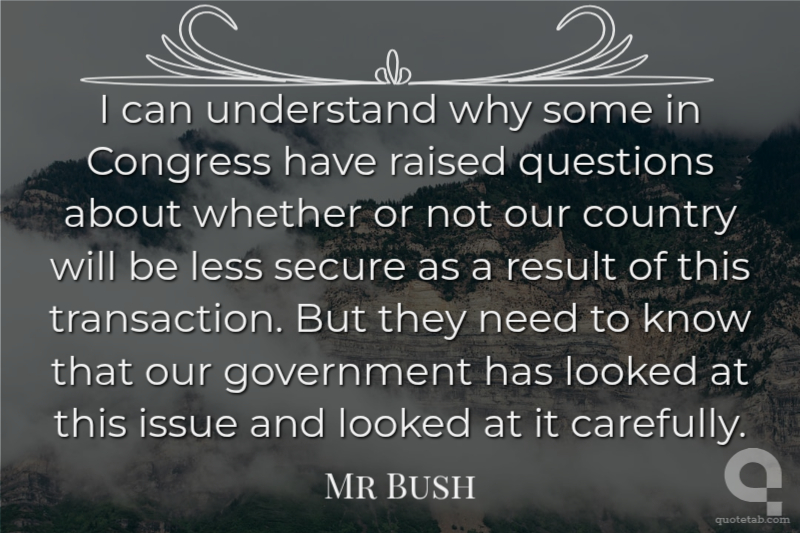 I can understand why some in Congress have raised questions about whether or not our country will be less secure as a result of this transaction. But they need to know that our government has looked at this issue and looked at it carefully.