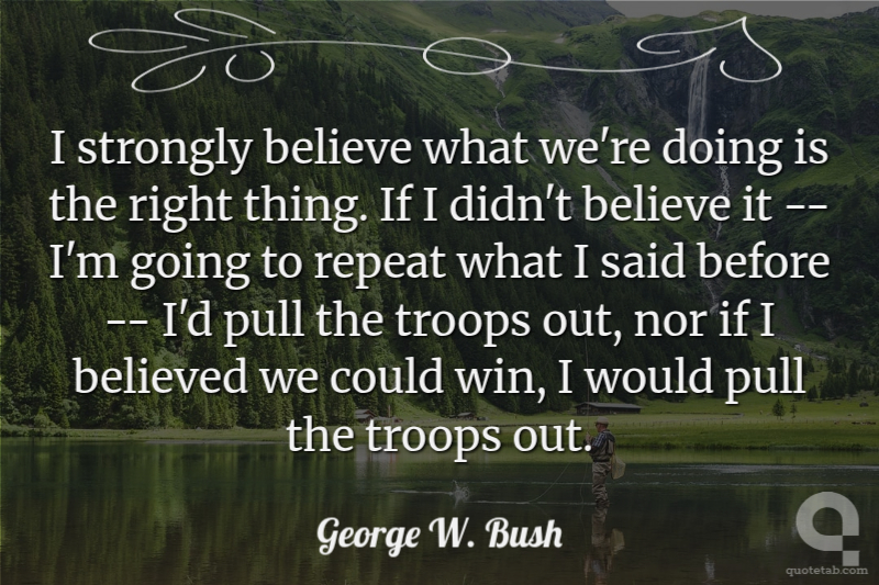 I strongly believe what we're doing is the right thing. If I didn't believe it -- I'm going to repeat what I said before -- I'd pull the troops out, nor if I believed we could win, I would pull the troops out.