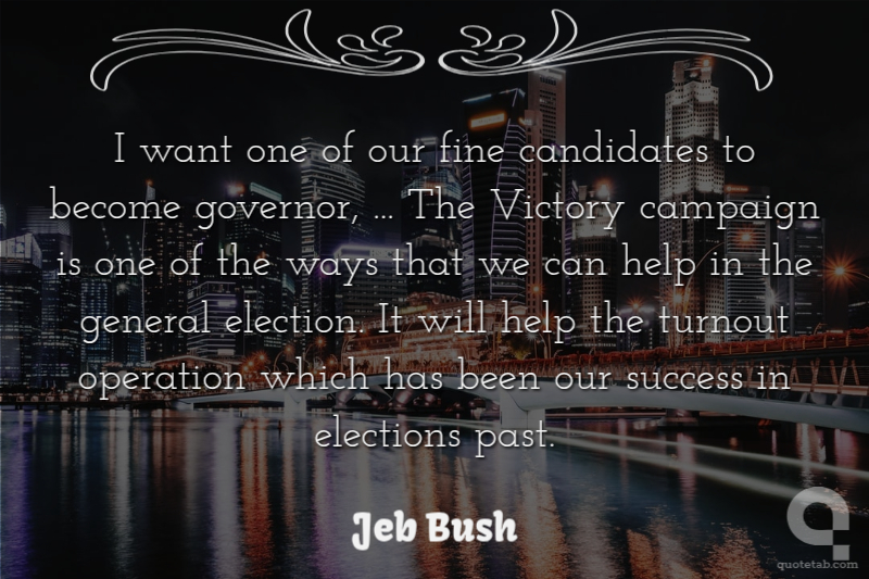 I want one of our fine candidates to become governor, ... The Victory campaign is one of the ways that we can help in the general election. It will help the turnout operation which has been our success in elections past.