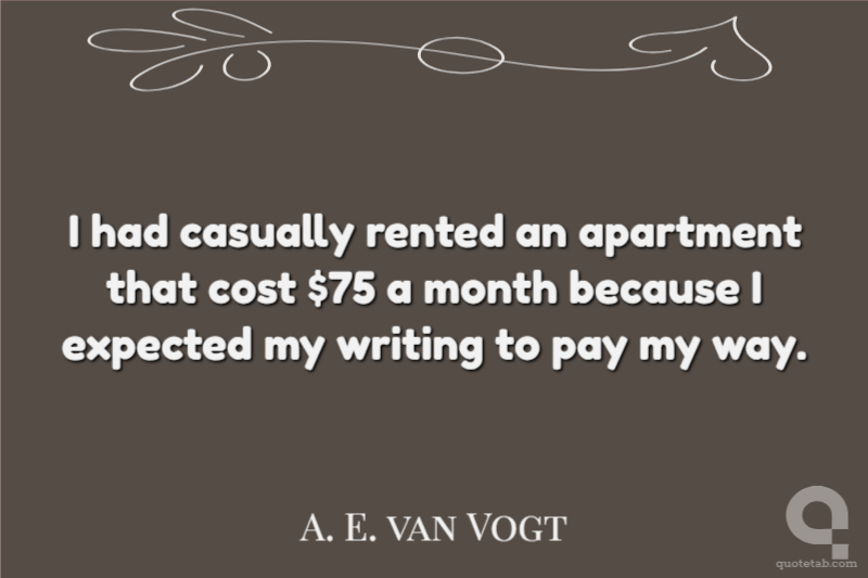I had casually rented an apartment that cost $75 a month because I expected my writing to pay my way.