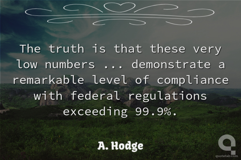 The truth is that these very low numbers ... demonstrate a remarkable level of compliance with federal regulations exceeding 99.9%.