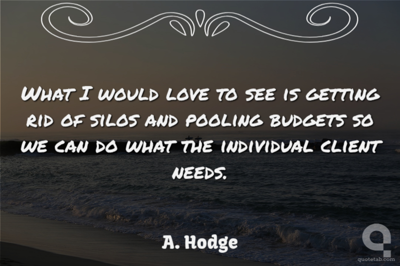 What I would love to see is getting rid of silos and pooling budgets so we can do what the individual client needs.