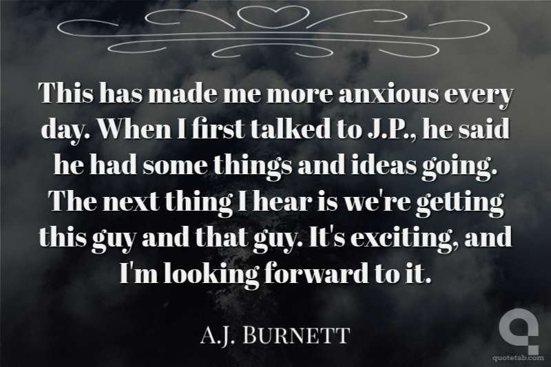 This has made me more anxious every day. When I first talked to J.P., he said he had some things and ideas going. The next thing I hear is we're getting this guy and that guy. It's exciting, and I'm looking forward to it.