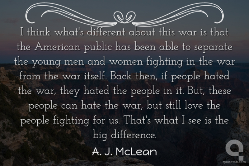 I think what's different about this war is that the American public has been able to separate the young men and women fighting in the war from the war itself. Back then, if people hated the war, they hated the people in it. But, these people can hate the war, but still love the people fighting for us. That's what I see is the big difference.