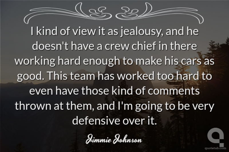 I kind of view it as jealousy, and he doesn't have a crew chief in there working hard enough to make his cars as good. This team has worked too hard to even have those kind of comments thrown at them, and I'm going to be very defensive over it.