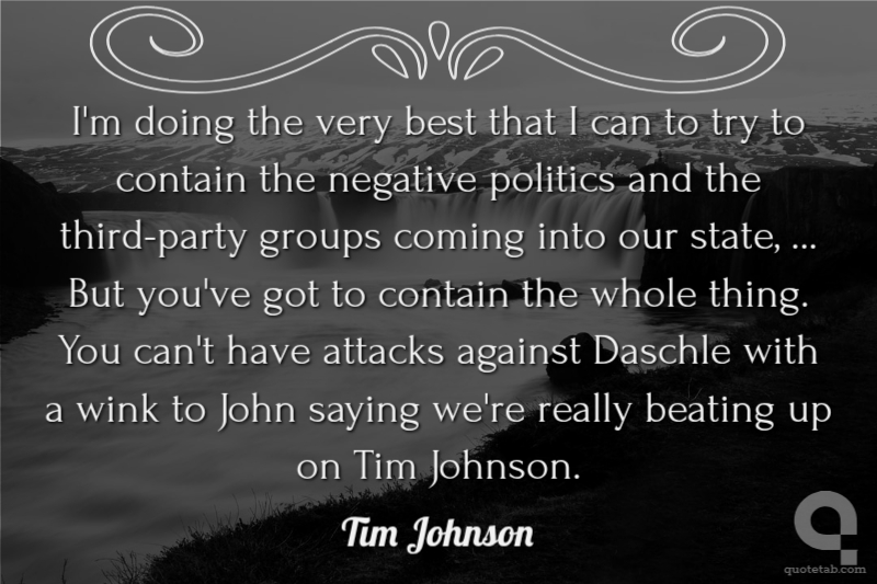 I'm doing the very best that I can to try to contain the negative politics and the third-party groups coming into our state, ... But you've got to contain the whole thing. You can't have attacks against Daschle with a wink to John saying we're really beating up on Tim Johnson.