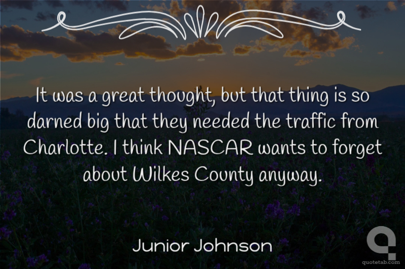 It was a great thought, but that thing is so darned big that they needed the traffic from Charlotte. I think NASCAR wants to forget about Wilkes County anyway.