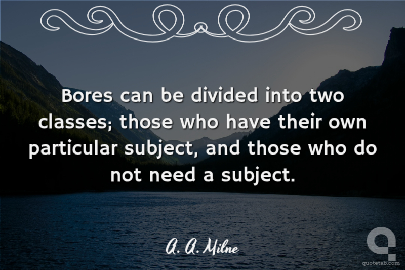 Bores can be divided into two classes; those who have their own particular subject, and those who do not need a subject.