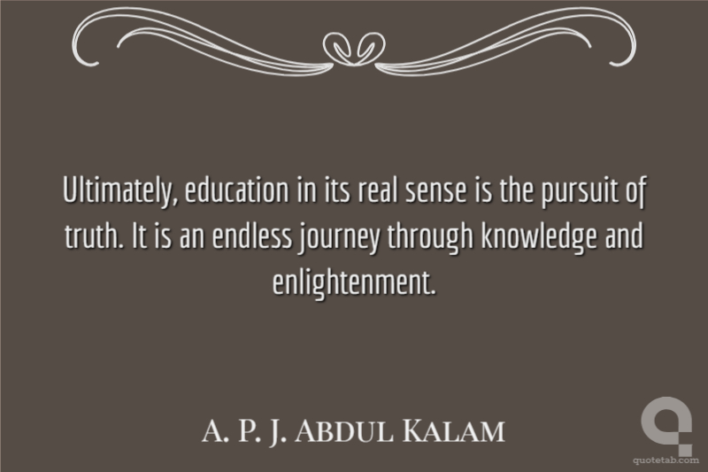 Ultimately, education in its real sense is the pursuit of truth. It is an endless journey through knowledge and enlightenment.