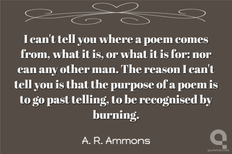 I can't tell you where a poem comes from, what it is, or what it is for: nor can any other man. The reason I can't tell you is that the purpose of a poem is to go past telling, to be recognised by burning.