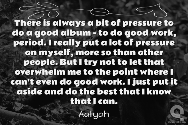 There is always a bit of pressure to do a good album - to do good work, period. I really put a lot of pressure on myself, more so than other people. But I try not to let that overwhelm me to the point where I can't even do good work. I just put it aside and do the best that I know that I can.