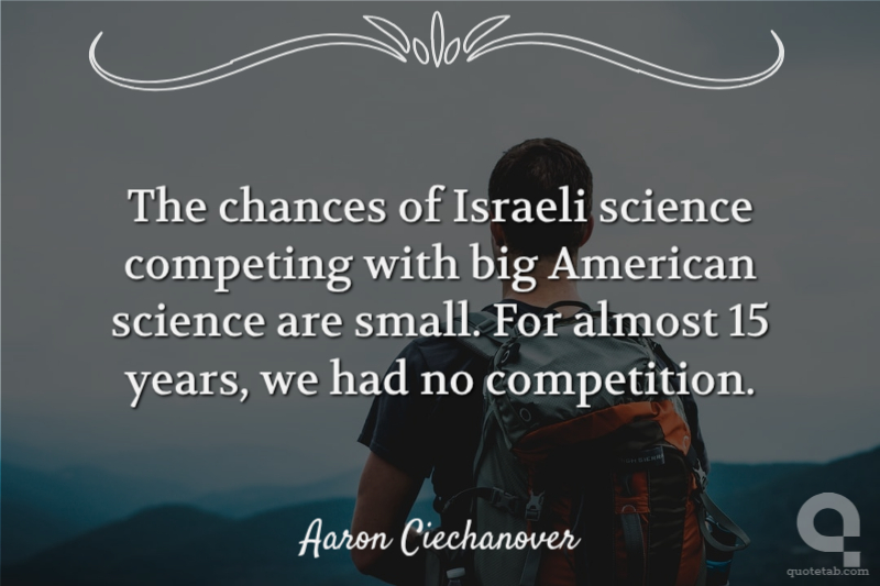 The chances of Israeli science competing with big American science are small. For almost 15 years, we had no competition.