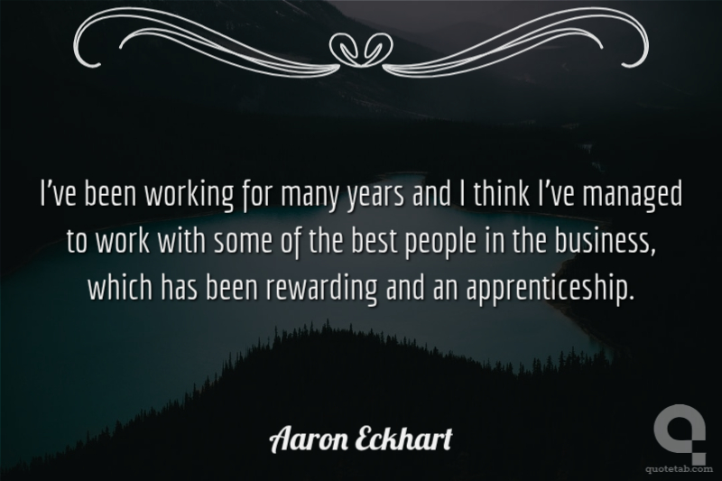 I've been working for many years and I think I've managed to work with some of the best people in the business, which has been rewarding and an apprenticeship.