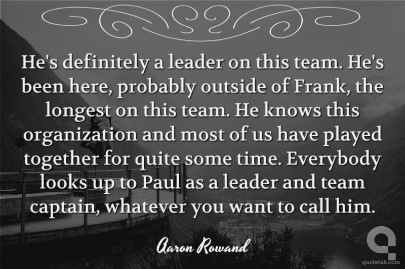 He's definitely a leader on this team. He's been here, probably outside of Frank, the longest on this team. He knows this organization and most of us have played together for quite some time. Everybody looks up to Paul as a leader and team captain, whatever you want to call him.